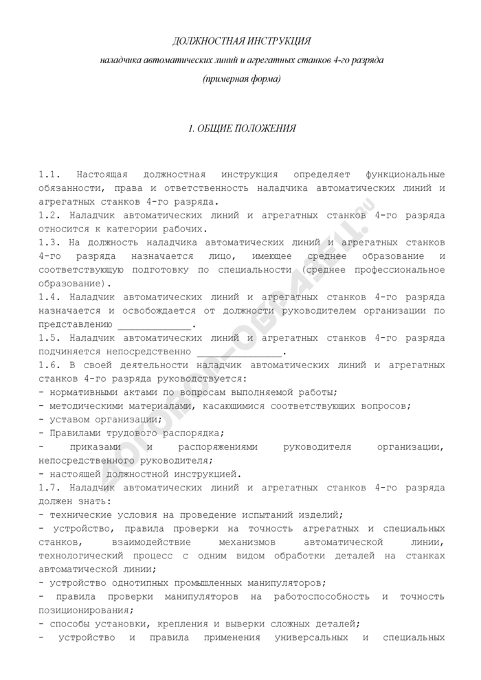 Должностная инструкция наладчика автоматических линий